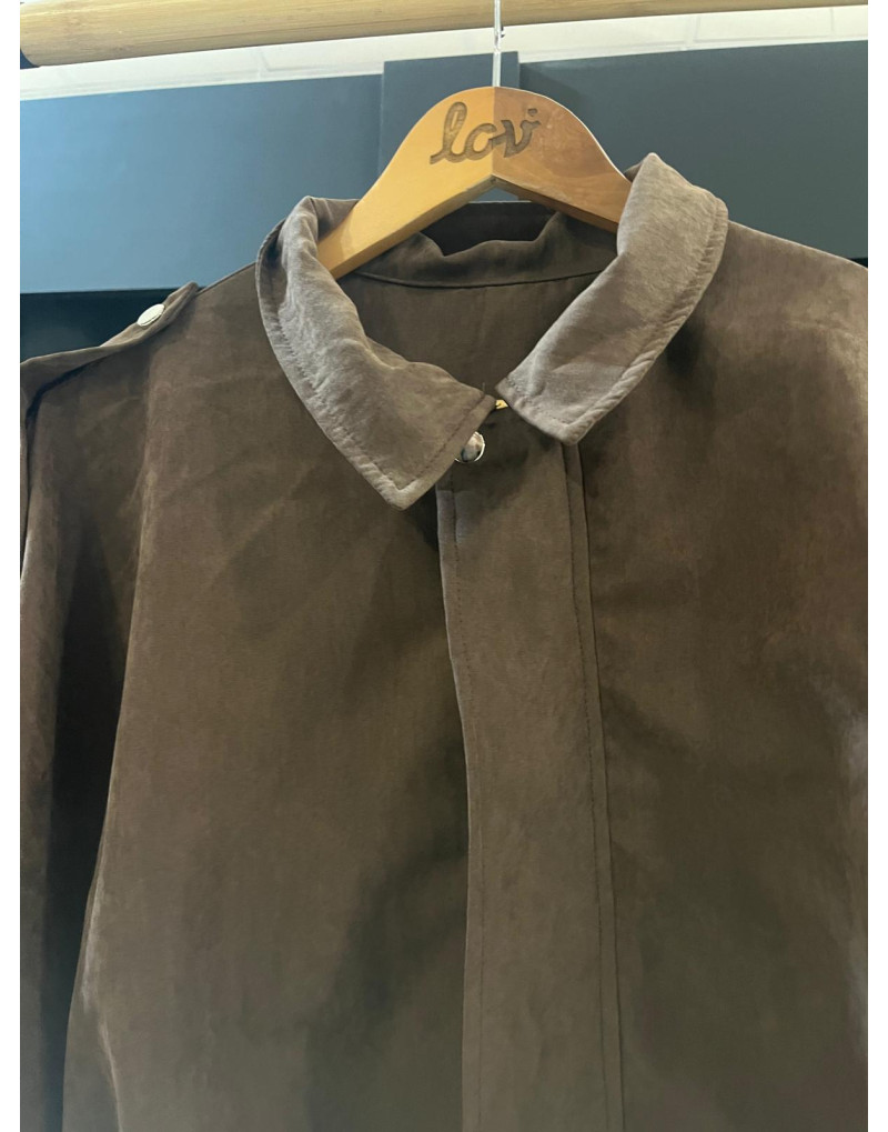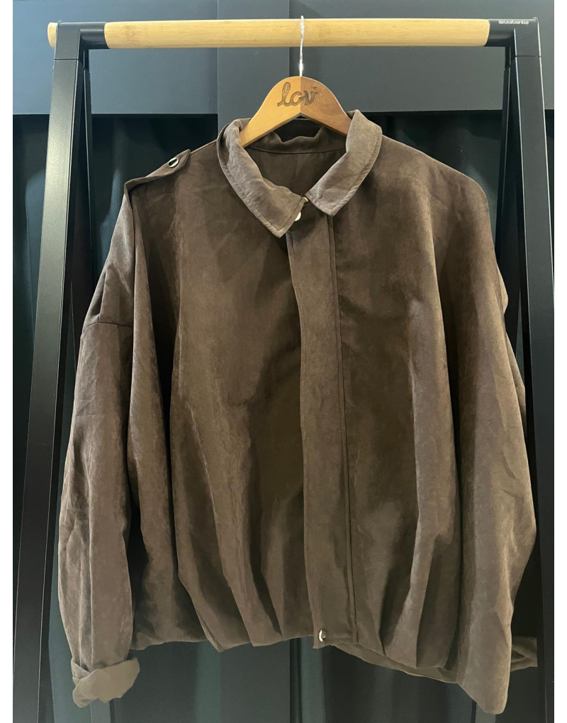 Chaqueta Bomber, en tonalidad marrón chocolate. 100% Poliéster.