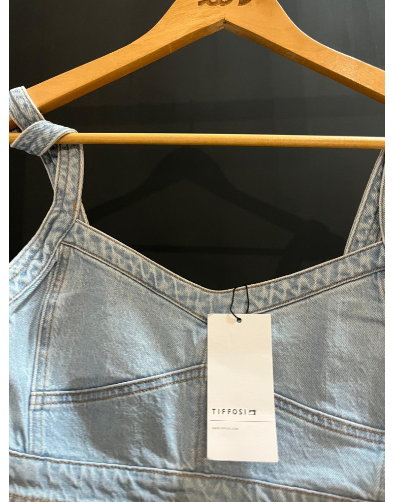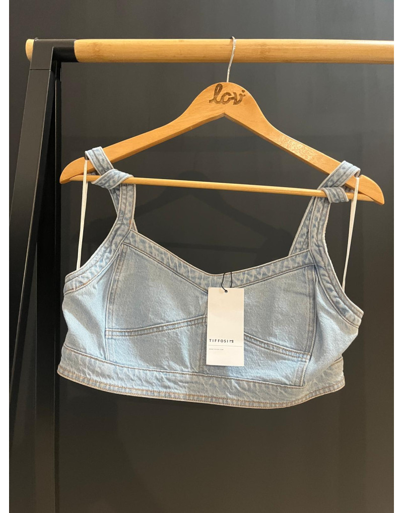 Top de mujer. Color vaquero clarito. Con forma. Corto.