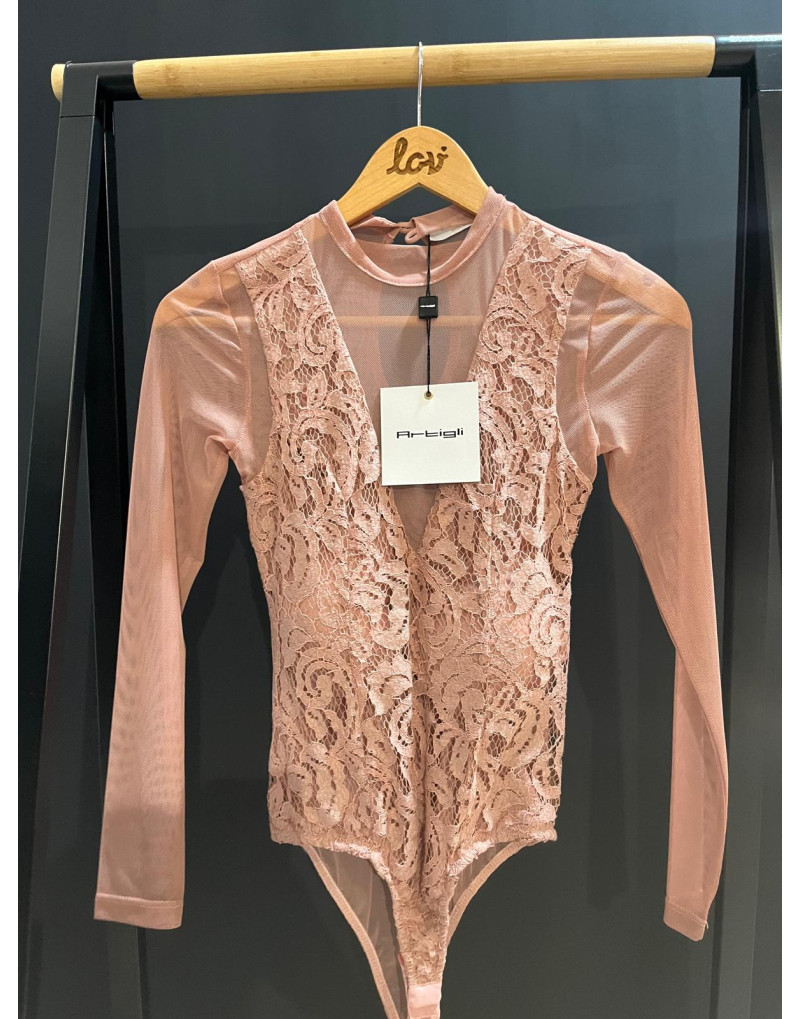 Body. Encaje. Tonalidad Rosa Palo. Manga Larga.