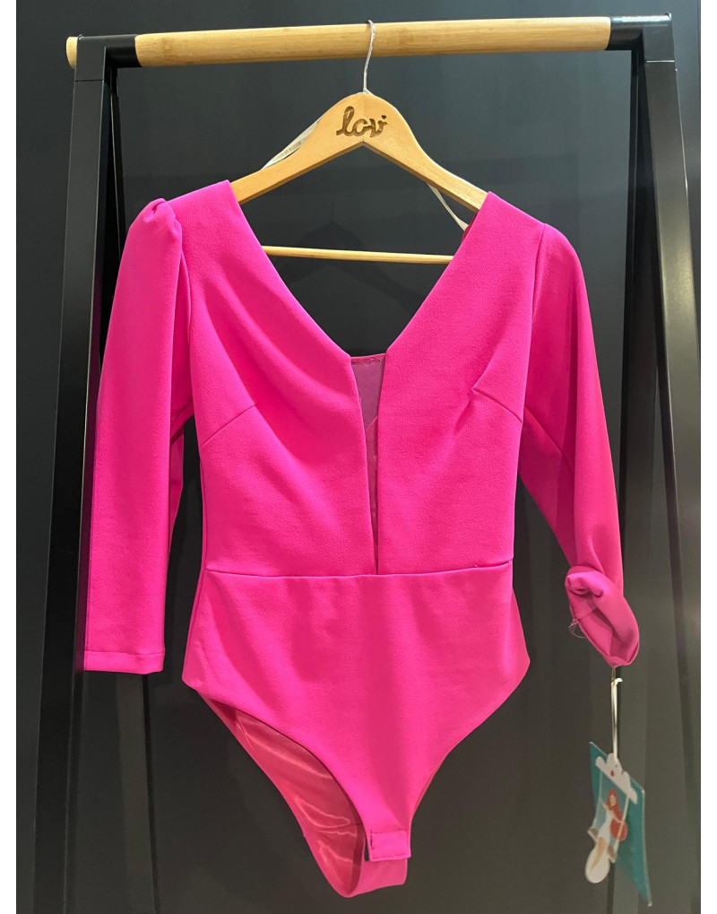 Body en tonalidad Fucsia. Manga larga. Transparencia en zona escote.