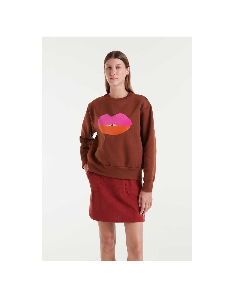 Sudadera con print de labios. Con cuello redondo y manga larga. Detalle de acabados en rib.